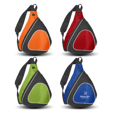 Design inspired slinger backpack which is manufactured from a combination of 600D polyester and 420D dobby nylon. It has an adjustable padded shoulder sling with a handy mesh phone holder and a carry handle. Other features include a zippered main compartment, a large zippered front pocket, a built in slot for earbuds and a mesh side pocket which is ideal for a water bottle. A production lead time of 10-15 working days applies to this product. Colours: Orange, Red, Lime Green, Royal Blue. Dimensions: W 330mm x H 480mm x 180mm. Branding Options: Screen Print-114mm x 102mm. Packing: Bulk. Carton Dimensions: 64cm x 43cm x 33cm x Carton Quantity: 50 pieces Carton Weight: 13.60kg. Price includes : Transfer/Printing 1 Colour. Setup is included.