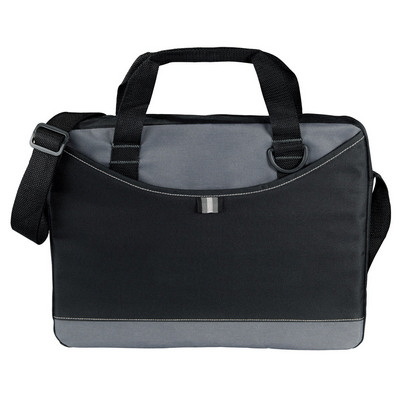 Description: Popular conference bag with zippered main pocket and easy access. Features: front Velcro pocket with pen loop and D-ring for keys, Adjustable shoulder strap and two carry handles, Available in 3 colours. Material: 600D Polycanvas. Colour: Grey. Product Size: 270mm(h) x 381mm(w) x 57mm(d). Decoration: Screen Print. Decoration Area: Screen: 150mm(w) x 60mm(h).