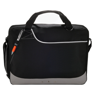 Description: Zippered main compartment and easy-access front pocket. Features: Pen loop and D-ring. Available in 3 colours, Adjustable shoulder strap and two carry handles. Packaging: Polybag. Colour: Black with White Trim. Material: 600D polyester. Product Size : 300mm(h) x 400mm(w) x 80mm(d). Decoration: Screen Print, embroidery. Decoration Area: Screen: 150mm(w) x 100mm(h). Other Methods: Contact your decorator for applicability and size. Pen not included.