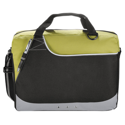 Description: Zippered main compartment and easy-access front pocket. Features: Pen loop and D-ring. Available in 3 colours, Adjustable shoulder strap and two carry handles. Packaging: Polybag. Colour: Green with White Trim. Material: 600D polyester. Product Size : 300mm(h) x 400mm(w) x 80mm(d). Decoration: Screen Print, embroidery. Decoration Area: Screen: 150mm(w) x 100mm(h). Other Methods: Contact your decorator for applicability and size. Pen not included.