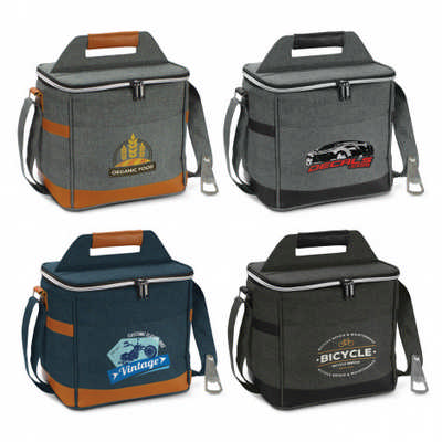 Nirvana is where fashion meets function and this modern 13L cooler bag has all the hallmarks of impeccable style and superior quality. It has thick PE foam insulation encased in a waterproof PEVA inner liner. The outer construction is poly-canvas with an on-trend heather style finish. Nirvana has an adjustable shoulder strap with a handy metal bottle opener riveted to it. Other features include a carry handle, a slip pocket on the front and a top closure with a smart electroplated silver zip. Colours: Grey/Brown, Grey/Black, Navy/Brown, Black/Black. Dimensions: H 250mm x W 250mm x Gusset 180mm (excludes handle and strap). Branding Options: Screen Print-Front Pocket - 170mm x 80mm. Packing: Poly bag. Carton Dimensions: 58cm x 42cm x 48cm x Carton Quantity: 25 pieces Carton Weight: 14.00kg. Price includes : Printing Per Colour. Setup is included.