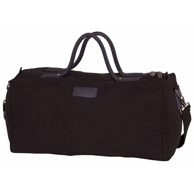 100% tightly woven cotton impregnated with microwax for durable water resistant finish - oilskin fabric. Inside lined in tartan design polyesterviscose yarn dyed fabric. Huge main compartment with oversized zips and extra wide end to end opening . Zippered security pocket inside main compartment. Genuine leather patch detail on side and end panels. Leather classic style handles. Antique finished brass hardware and accessories. Detachableadjustable heavy duty webbing shoulder strap. Brass feet for added protection. Capacity: 55 Litres. Dimensions: 58cm W x 31cm H x 31cm D. Decoration Area: Front: 200mm W x 150mm H (embroidery only), Badge: 60mm W x 25mm H. Colour: brown