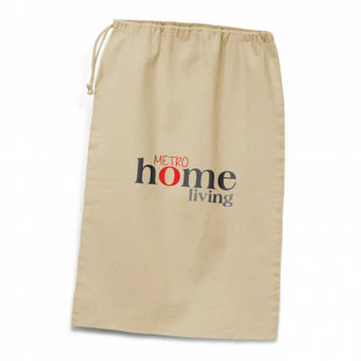 Drawstring laundry bag which is manufactured from 140gsm unbleached natural cotton. Cotton is an environmentally-friendly renewable resource and it is easy to wash ensuring the laundry bag is always clean. Colours: Natural. Dimensions: H 595mm x W 400mm. Branding Options: Screen Print-300mm x 360mm. Packing: Loose packed. Carton Dimensions: 63cm x 43cm x 28cm x Carton Quantity: 200 pieces Carton Weight: 16.00kg. Price includes : Printing Per Col/Pos. Setup is included.