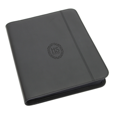 Soft Koeskin PU A4 tablet holder. Double sided inside divider, Removable tabletiPad holder. Multiple inside pockets, Smart phone holder, Elastic USB holders, Pen loops. Lined pad, full zipped closure. . Colours: Black. Product Size: 240 x 330mm. Material: Soft koeskin. Print Size: 150 x 250mm. Print Type: Screen.
