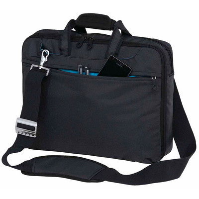 210D Tech performance two tone nylon with latex rubber backing. Ballistic Blue contrast 210D polyester lining. Fully padded lay flat compartment accelerating airport security. Fully cell foam padded laptoptablet compartment with tricot protective lining fits 15" laptop. Zippered mesh pocket inside. Front zippered compartment with multiple pocket organiser and key fob. Front slip pocket with Velcro closure. Protective integrated wire frame mechanism. Integrated panel can slip over wheeled bag handle. High grade aluminium hardware and accessories. Neoprene Velcro wrap carry handle. Detachableadjustable padded shoulder strap with aluminium buckles. Capacity: 8 Litres. Dimensions: 39cm W 30cm H 7cm D. Decoration Area: Front: 250mm W x 150mm H. Colour: charcoal