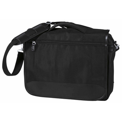 1680D ballistic nylon with leatherette trim. Fully padded main compartment fits 17" laptop. Zippered front flap accessory pocket. Sure grip moulded handle with neoprene padding to wick away moisture. Dual quick release compression buckles. Multiple organiser pockets. Front slip pocket under main flap. Detachableadjustable padded shoulder strap with metal buckles. Capacity: 14 Litres. Dimensions: 42cm W x 31cm H x 11cm D. Decoration Area: Front: 200mm W x 150mm H. Colour: black