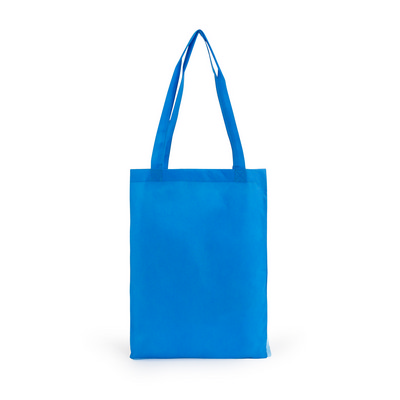 Non woven tote without gusset to hold A4 documents. 80gsm weight, with two long carry handles. Colours: Process Blue. Product Size: 380 x 280mm. Material: Non Woven. Print Size: 285 x 380mm. Print Type: Screen, Transfer.