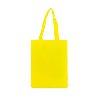 Non woven tote without gusset to hold A4 documents. 80gsm weight, with two long carry handles. Colours: Yellow. Product Size: 380 x 280mm. Material: Non Woven. Print Size: 200 x 180mm. Print Type: Screen, Transfer.