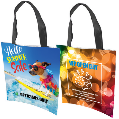Double handle non woven bag made from 80GSM PET material. Full colour sublimation both sides. Collection: Bags Category: Non Woven Bags Materials: PET Item Size: Bag Size: 330mmL x 355mmH, Handle Length: 460mmL