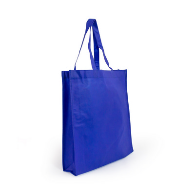 Made from recycled material, 80 gsm with reinforced straps and gusset. Colours: Royal Blue. Product Size: 380 x 430 x 100mm. Material: Non Woven. Print Size: 200 x 200mm. Print Type: Screen, Transfer.