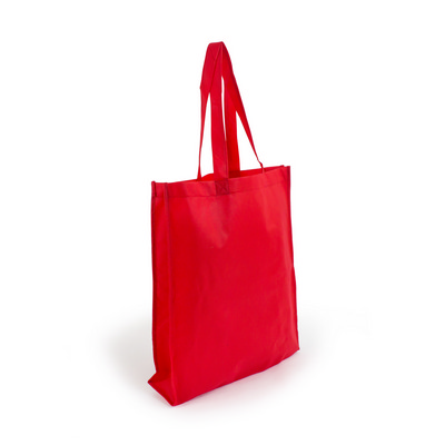 Made from recycled material, 80 gsm with reinforced straps and gusset. Colours: Red. Product Size: 380 x 430 x 100mm. Material: Non Woven. Print Size: 200 x 200mm. Print Type: Screen, Transfer.