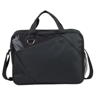 600D polyester, with contrasting ripstop inlay. Front zip pocket with D ring for keys and a pen loop. Side mesh pocket, adjustable shoulder strap and convenient top carry handle, wide opening top zip compartment. Colours: BlackBlack. Product Size: 380 x 280 x 100mm. Material: 600D Polyester. Print Size: 200 x 150mm. Print Type: Screen, Transfer.