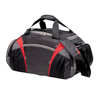 Huge capacity, easy U-shaped opening, and racy look make the Chicane Sports Bag the choice of winners. Product Features: 420Ddiamond ripstop600D polyester | Single zippered front pocket | Single zippered large end pockets | U-shape double zippered main compartment | Rubber feet on base | Diamond ripstop feature panels | Webbing carry handles with Velcro wrap | Detachable, adjustable shoulder strap with pad | Two elasticated top air mesh slip pockets at front | Business card holder on back | Baseboard. Product Item Size: 57cm x 31cm x 31cm d. Colours: Black, Red | Black, Silver. Decorations Options Available: Embroidery | Screen Print | Plastisol Transfer | Digital Transfer. Decoration Areas: Embroidery Area, Front centre: 160mm diameter, Lid: 160mm diameter, Ends: 160mm diameter | Print Transfer Area, Front centre: 150mm x 150mm h, Lid: 300mm x 160mm h, Ends: 200mm x 150mm h.