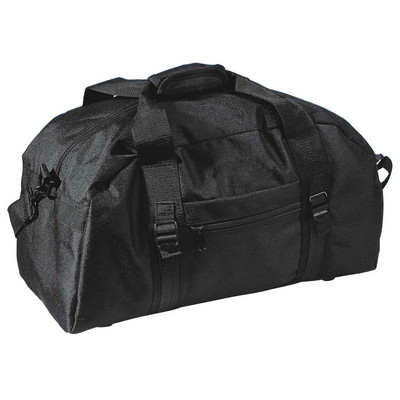 600D polyester with latex rubber backing. Roomy main compartment with two way end to end zippers. Outer quick stash slip pocket. Double webbing lash downs for carrying blue prints, bats, or baguettes. Adjustable shoulder strap. Velcro wrap carry handle for a comfortable grip. Capacity: 33 Litres. Dimensions: 50cm W x 27cm H x 25cm D. Decoration Area: Front: 150mm W x 50mm H. Colours: black, navy