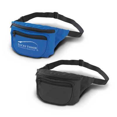 Deluxe waist bag manufactured from coated 420D nylon, Has three zippered pockets and an adjustable 112 cm waist belt. A production lead time of 10-15 working days applies to this product. Colours: Royal Blue, Black. Dimensions: W 305mm x H 152mm. Branding Options: Screen Print-82mm x 38mm (one colour). Packing: Loose packed. Carton Dimensions: 64cm x 44cm x 34cm x Carton Quantity: 150 pieces Carton Weight: 13.20kg. Price includes : Printing 1 Colour. Setup is included.