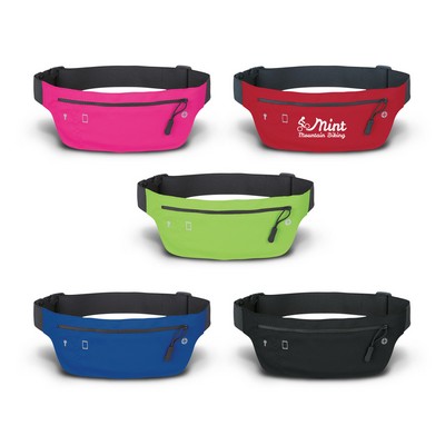 Waist bag with an adjustable 104 cm belt which is ideal for running, walking or at the gym. Has a large zippered front pocket, an internal key pocket and a slot for earbuds. A production lead time of 10-15 working days applies to this product. Colours: Pink, Red, Lime Green, Royal Blue, Black. Dimensions: W 279mm x H 101mm. Branding Options: Screen Print-101mm x 51mm. Packing: Loose packed. Carton Dimensions: 64cm x 44cm x 34cm x Carton Quantity: 200 pieces Carton Weight: 11.80kg. Price includes : Printing 1 Colour. Setup is included.